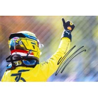 L'autografo è apposto sul box della Ferrafi F1 - 75 macchina della stagione sportiva 2022, che si concluse con un secondo posto alle spalle di Max Verstappen.