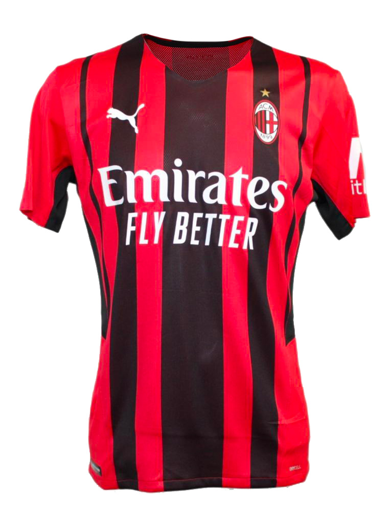 Maglia Milan versione Home Player Issued preparata per il calciatore Daniel Maldini, figlio di Paolo, per un match di Serie A per la stagione 2021/2022.