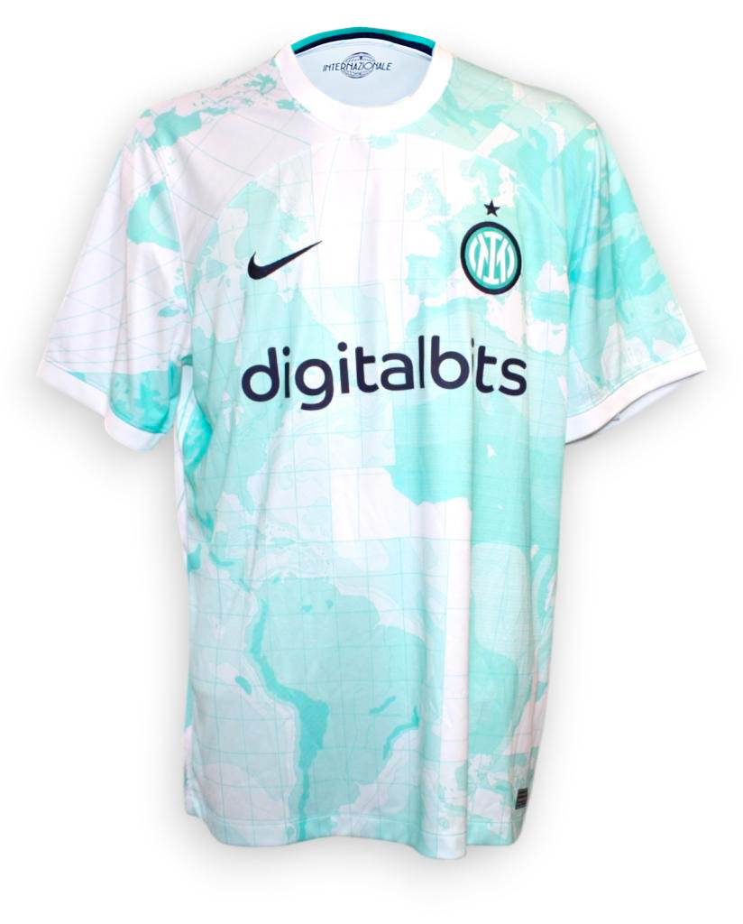 La maglia, prodotta da Nike, è stampata sulla trama di un mappamondo e riporta lo sponsor “digitalbits" sul fronte. Sul retro è presente lo sponsor "Lenovo" color blu scuro.