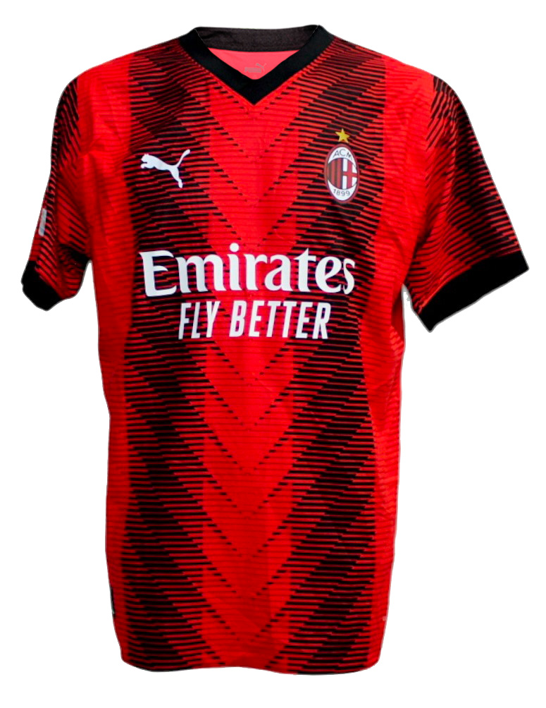 La maglia Puma Milan 2023-2024 presenta la combinazione di colori più classica della squadra - rosso e nero - ma un design rivoluzionario.