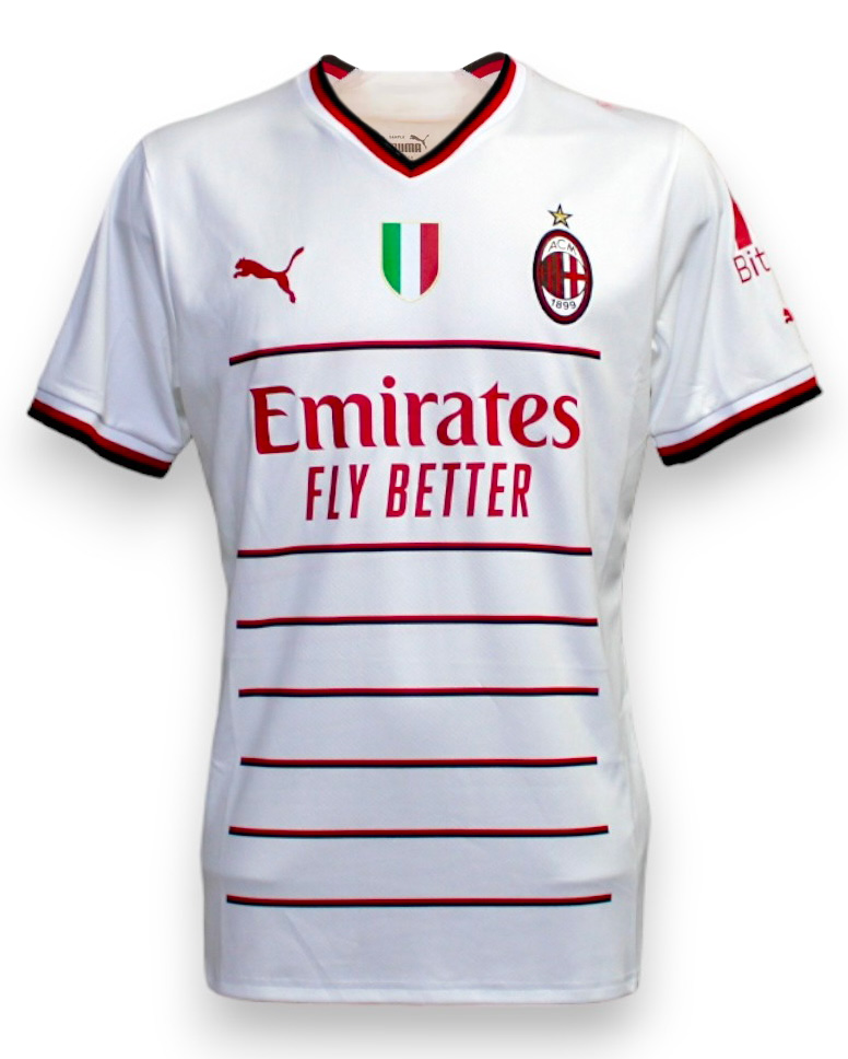 La maglia da calcio Away Puma AC Milan 2022-2023 combina una base bianca con accenti e finiture rosso tango, riportando quella che è di gran lunga la colorazione alternativa più iconica del Milan.