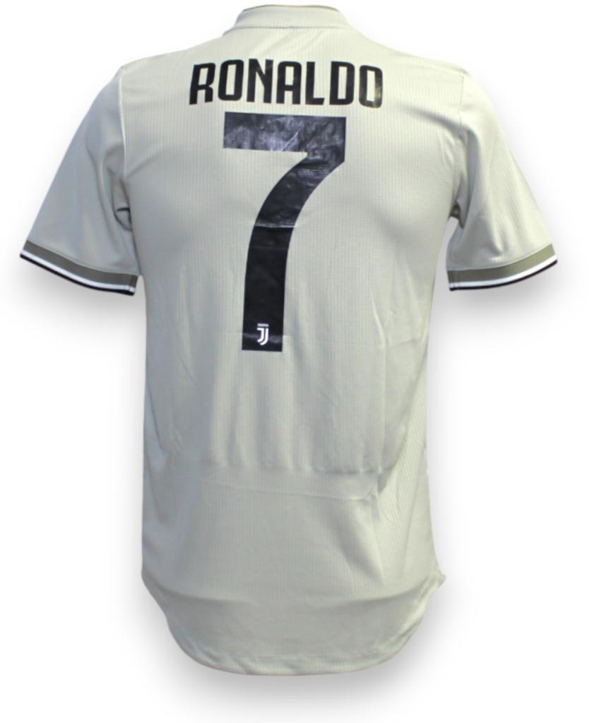 Maglia calcio store authentic Juventus Cristiano Ronaldo versione Away anno 2018-2019. La divisa, realizzata da Adidas, presenta il logo del club con tre stelle e lo scudetto al centro del petto. Il main sponsor commerciale è Jeep.