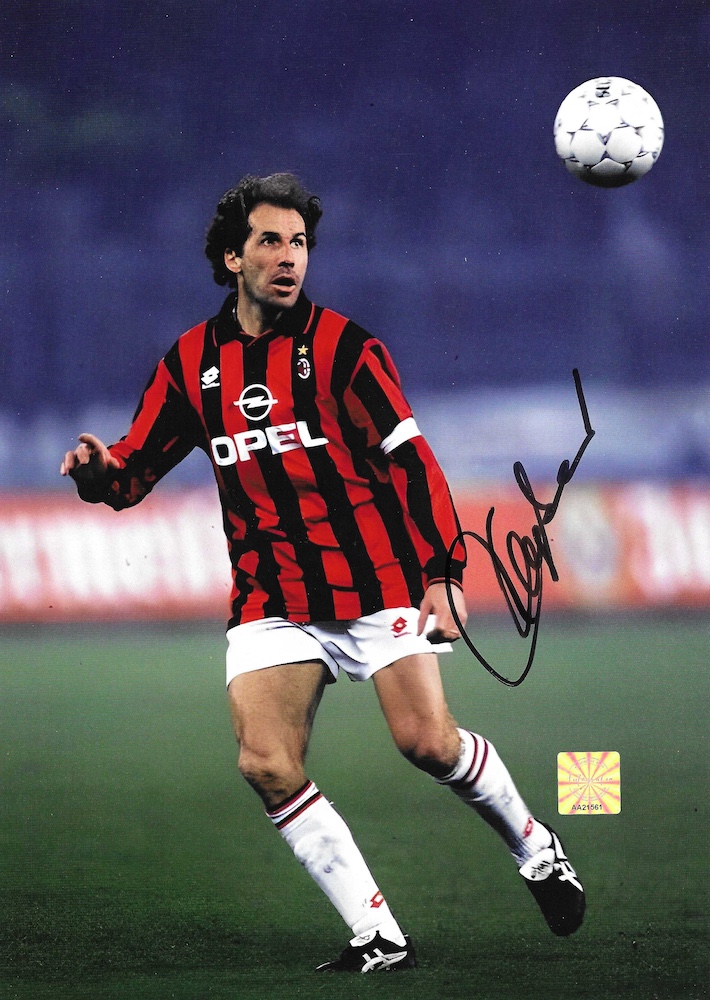 Autografo di Franco Baresi con la maglia del Milan fotografia a colori