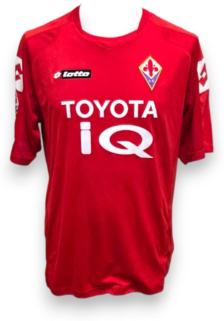 Maglia Fiorentina Third 2008/09 Player Issued con personalizzazione Montolivo 18, colorazione rossa/magenta. Sul petto è presente lo stemma della Fiorentina e il logo Lotto, con lo sponsor “Toyota iQ” in bianco ben visibile al centro. Sulla manica è applicata la patch ufficiale Serie A. Il colletto è girocollo semplice, con finiture lineari in tinta unita.
