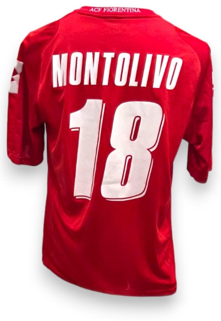 Sul retro è stampato il nome “MONTOLIVO” con il numero 18 in bianco con contorno, in font classico da gara. All’interno è presente l’etichetta Lotto Italian Sport Design.