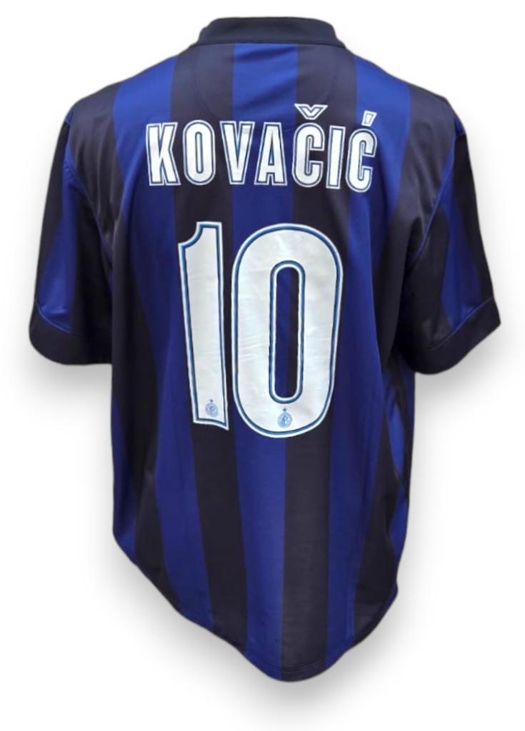 Maglia Inter versione Home 2013/14 versione store con personalizzazione Kovacic 10, modello ufficiale Nike. Il design è quello classico nerazzurro a strisce verticali blu e nere. Sul petto risaltano il logo Nike in bianco e lo stemma dell’Inter con la stella. Il colletto è a girocollo con linguetta centrale, in stile classico da gara.