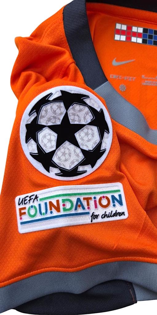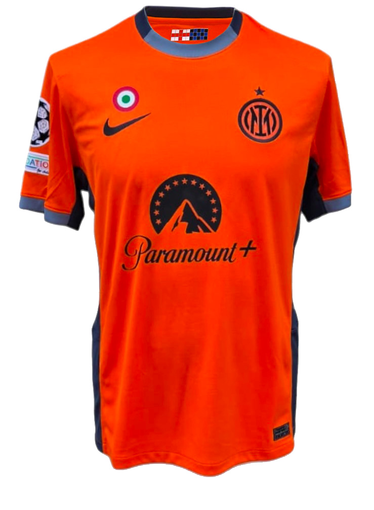 Questa maglia corrisponde al terzo kit 2023-24, un modello inedito in arancione, che Nike ha introdotto per rinnovare l’identità stilistica della terza divisa nerazzurra.