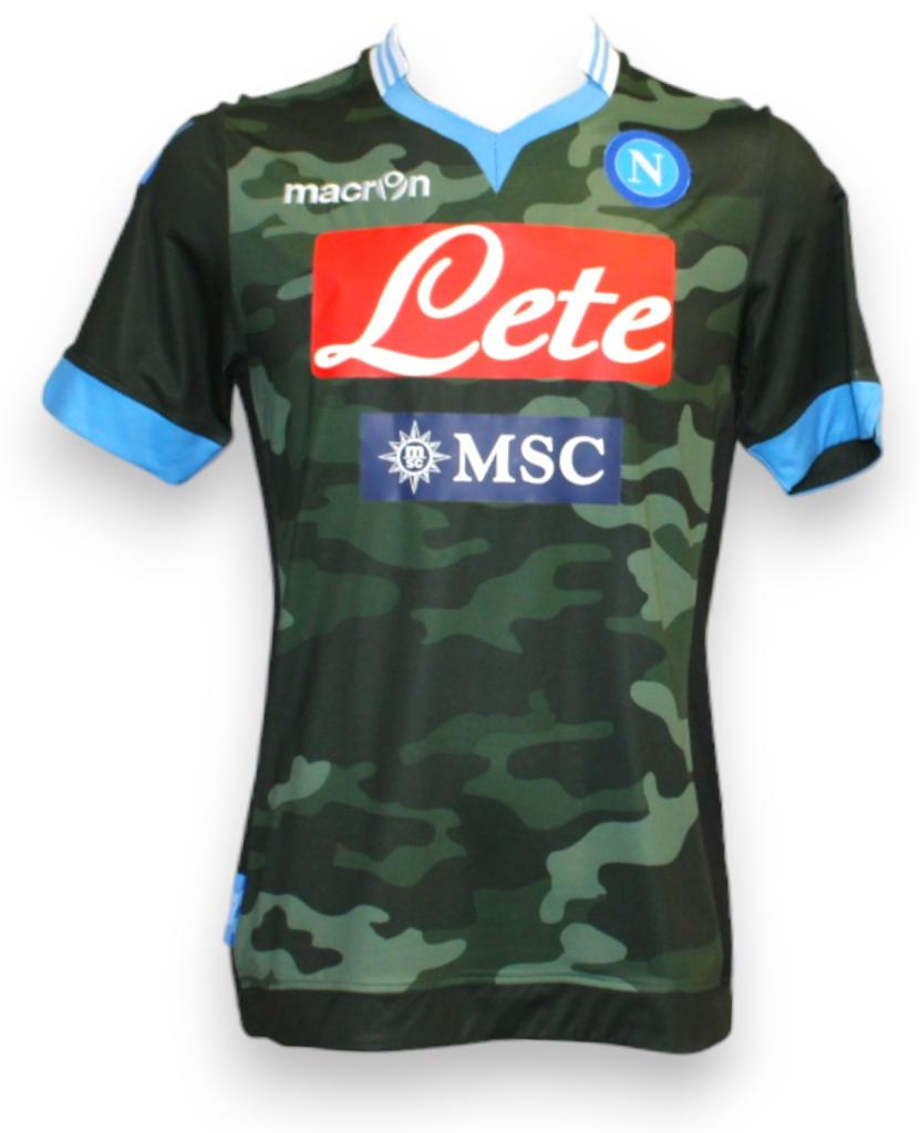 Maglia Napoli away 2013/14 Macron camouflage verde-militare con sponsor Lete / MSC, versione store.