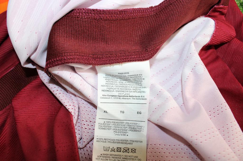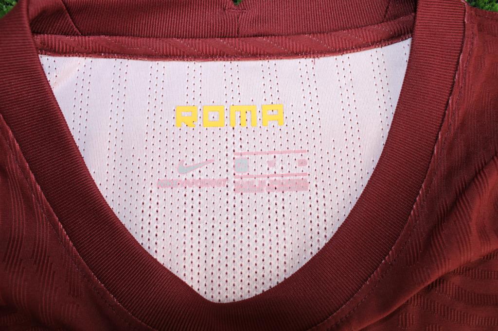 Sul petto è stampato il logo Qatar Airways in bianco e il logo Nike in giallo sul lato destro. Sul lato sinistro è presente lo stemma dell’AS Roma.