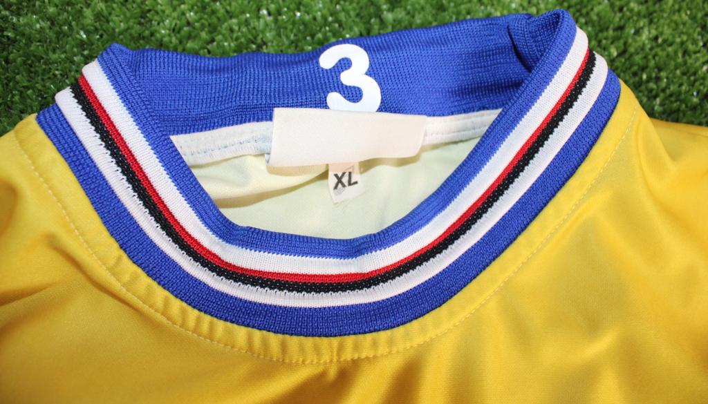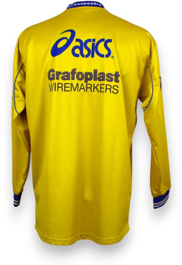Maglia Sampdoria training realizzata da Asics, gialla, colletto con colori societari, versione manica lunga.