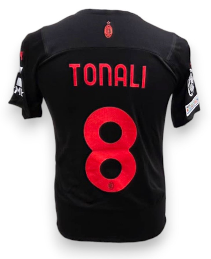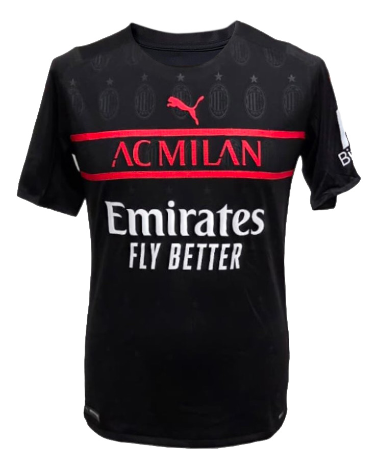 Maglia third dell’AC Milan stagione 2021/22 personalizzata Tonali 8 , versione store prodotta da Puma, patch UEFA Champions League.