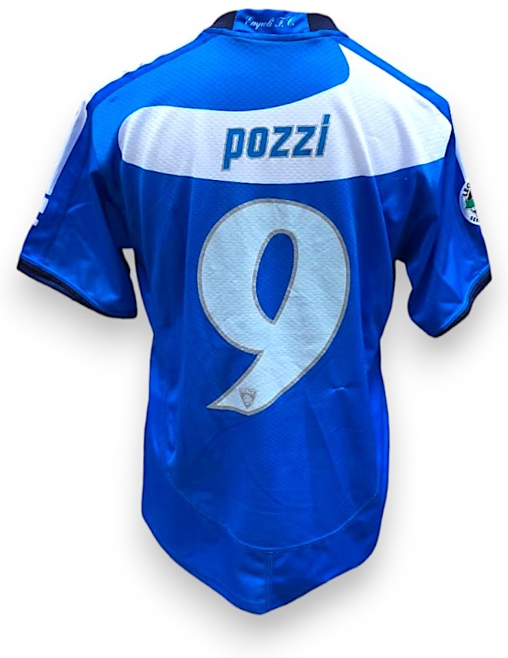 Il retro riporta il nome Pozzi e il numero 9 in stampa applicata, con personalizzazione originale della stagione. Tessuto tecnico Asics “Team Line” con struttura traspirante e vestibilità aderente. Una maglia che rappresenta non solo la tradizione dell’Empoli, ma anche un periodo particolare della Serie A, impreziosita dallo sponsor creativo che la rende tra le più riconoscibili e ricercate dai collezionisti.