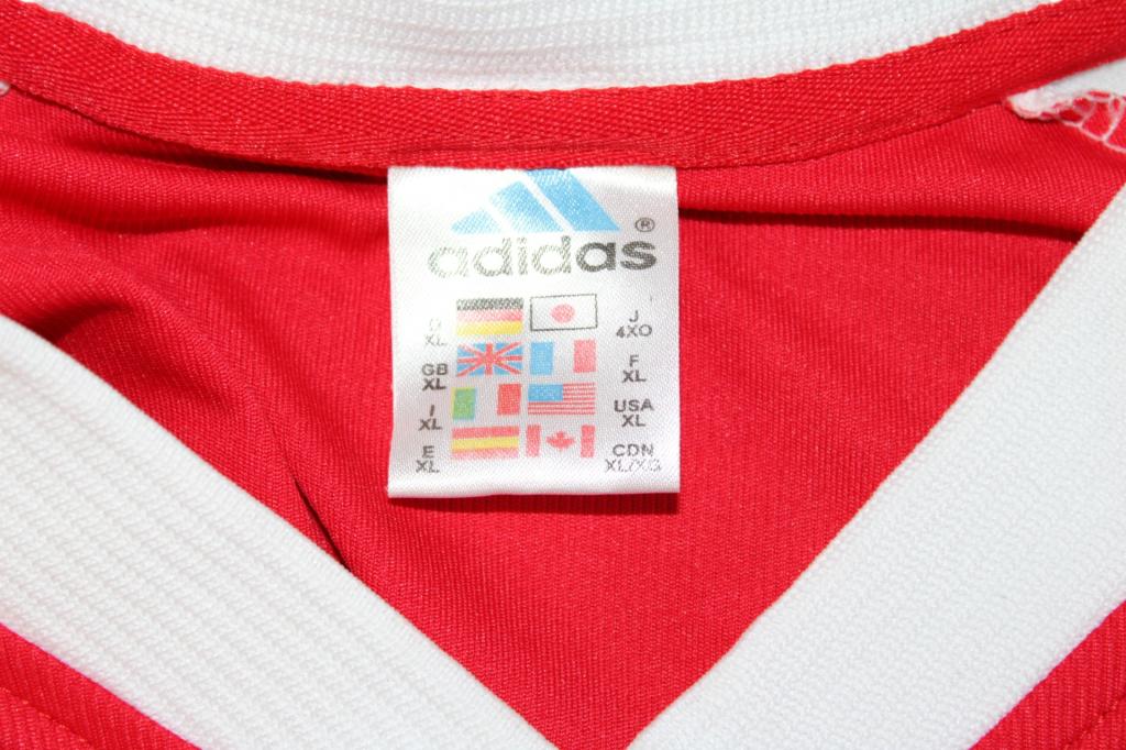 Il colletto a “V” e le maniche con inserti in mesh migliorano la traspirabilità, rendendo la maglia particolarmente confortevole. Sul retro domina la continuità della fascia rossa centrale senza interruzioni, simbolo della purezza del design olandese. L’etichetta interna mostra la taglia XL e la provenienza “Made in Thailand”. Versione Store ufficiale destinata alla vendita ai tifosi.