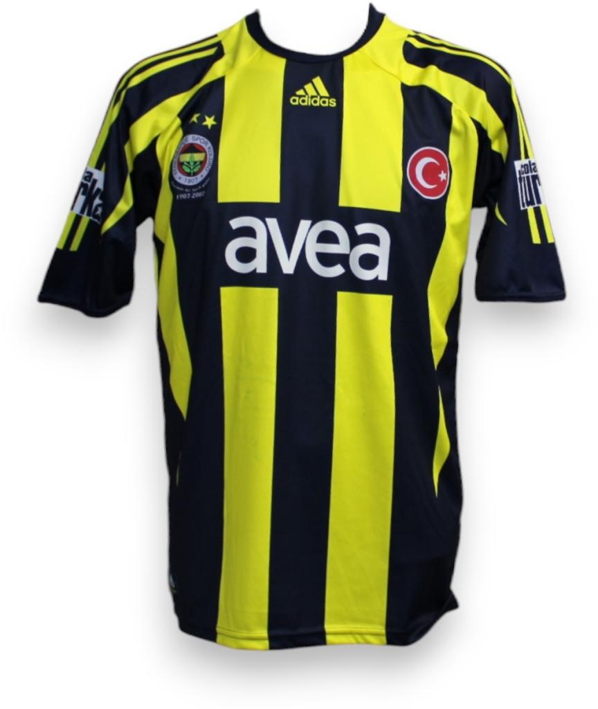 Maglia ufficiale home del Fenerbahçe utilizzata nella stagione 2006/2007, prodotta da Adidas, versione player issued. Il design presenta le tradizionali bande verticali gialle e blu navy, con dettagli neri sulle spalle e maniche. Sul petto figurano lo stemma del club con due stelle ricamate, lo sponsor tecnico Adidas e quello commerciale “Avea”, accompagnati dalla bandiera nazionale turca a destra.