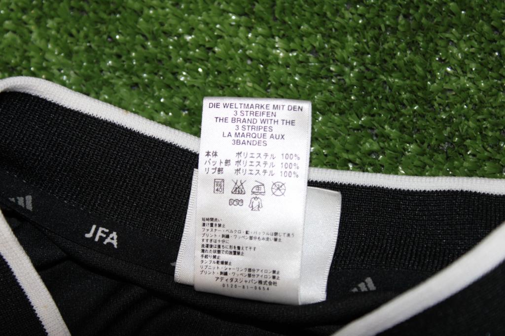 La maglia è realizzata in tessuto tecnico 100% poliestere con tecnologia ClimaLite, per garantire comfort e traspirabilità. All’interno del colletto è riportata la scritta “JFA” e un’etichetta con bandiere internazionali e taglia XO, prodotta in Giappone.