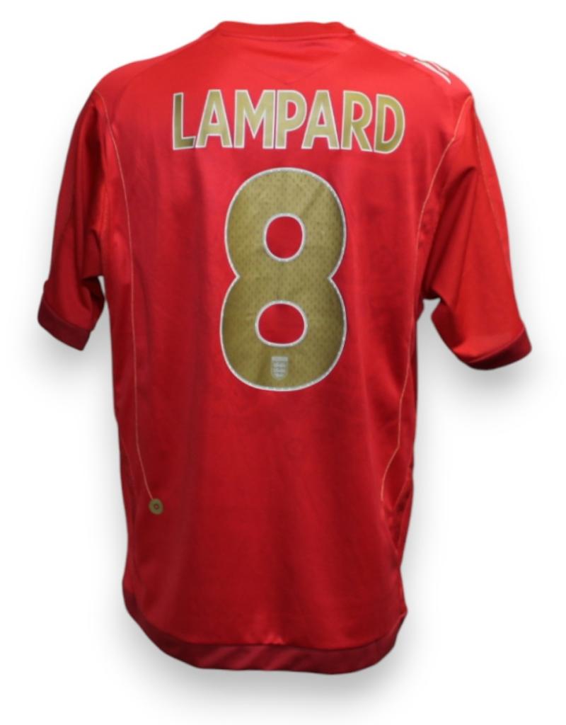 Maglia ufficiale away della Nazionale Inglese, prodotta da Umbro per la stagione 2008/09 e utilizzata nelle qualificazioni ai Mondiali 2010. Si tratta della versione store personalizzata con il nome e numero Lampard 8 in stampa ufficiale dorata.