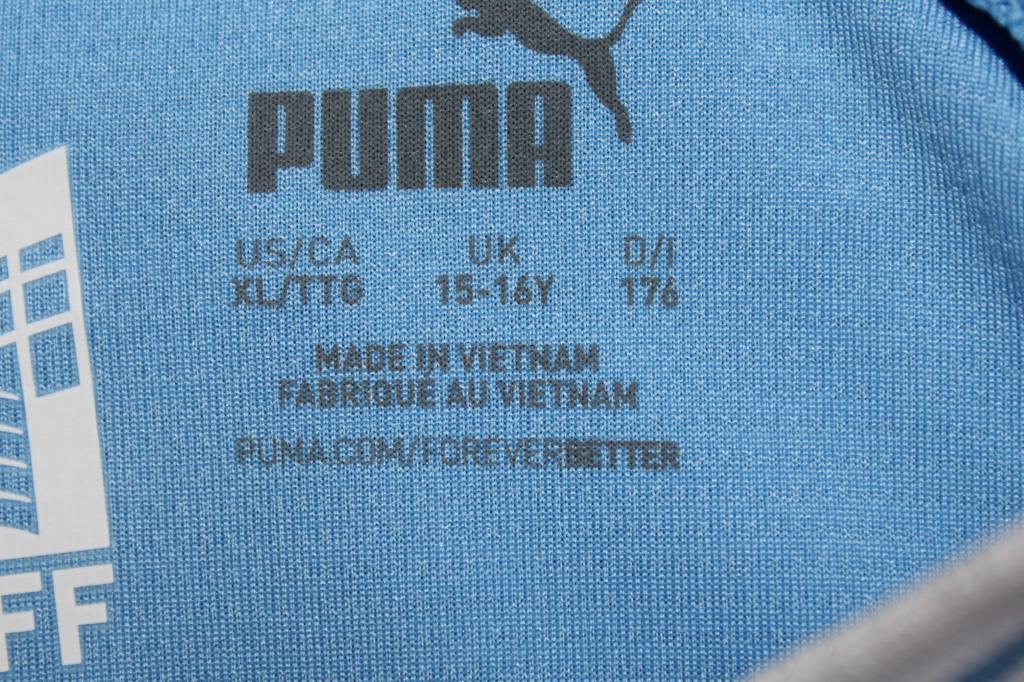 Il taglio slim e il tessuto tecnico dryCELL in poliestere assicurano traspirabilità e comfort durante l’attività sportiva. All’interno del colletto è stampata la taglia UK 15-16Y (176) e l’indicazione Made in Vietnam, confermando l’alta qualità produttiva tipica delle linee Puma.