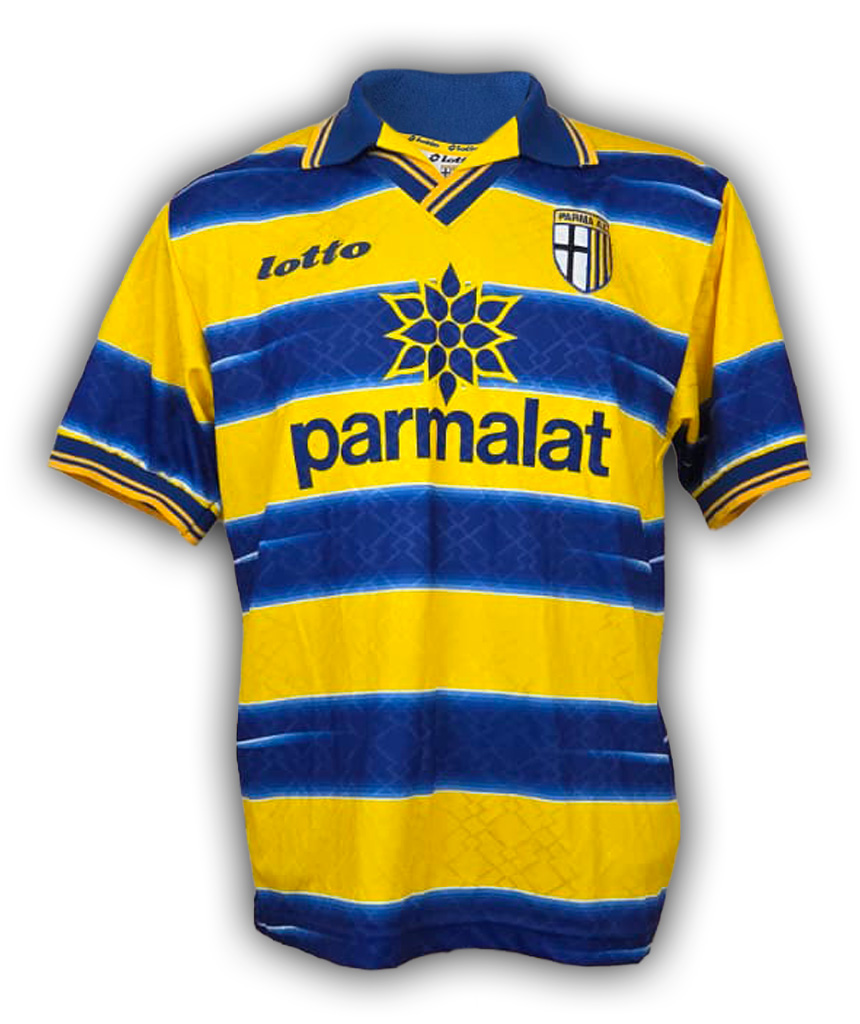 Probabilmente una delle divise più iconiche di tutta la Serie A, quella del Parma è una maglia tra le più richieste e collezionate di tutti gli anni ’90.