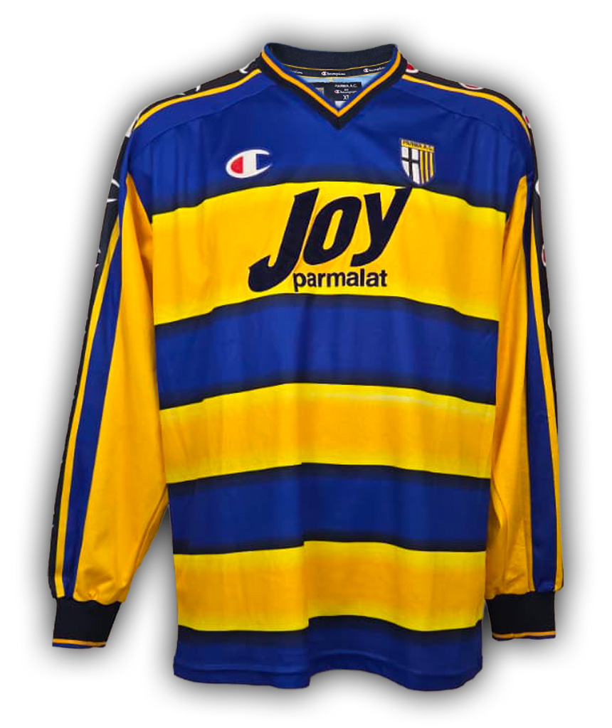 Probabilmente una delle divise più iconiche di tutta la Serie A, quella del Parma è una maglia tra le più richieste e collezionate di tutti gli anni ’90.