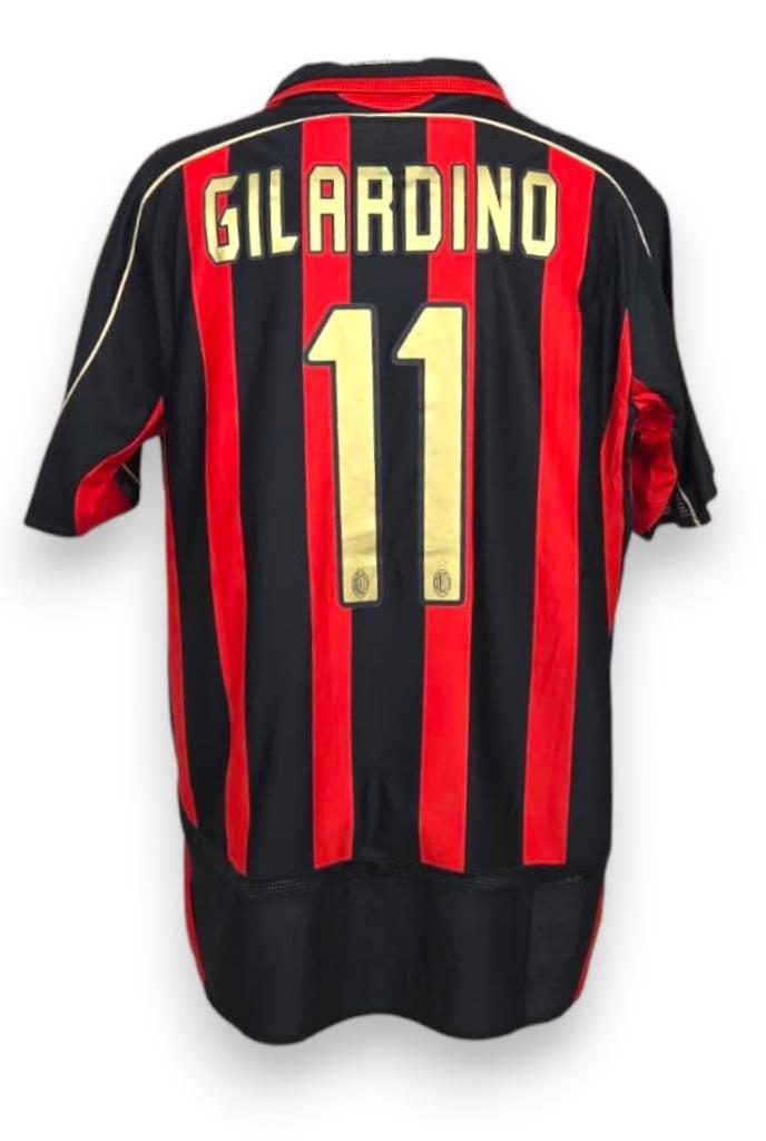 Maglia Home del Milan stagione 2006/2007, firmata Adidas e personalizzata Gilardino 11, caratterizzata dalle classiche strisce rossonere.