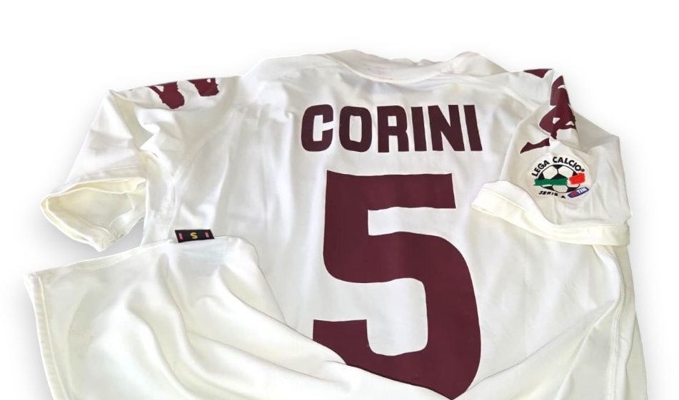 Seconda maglia del Torino FC stagione 2008-2009, versione Player Issued con nome Corini e numero 5, patch ufficiale Serie A.