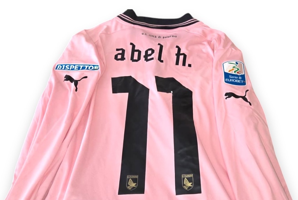 Maglia Home del Palermo stagione 2013-2014, versione Player Issued a manica lunga, indossata in Serie B e personalizzata con Abel H. 11.