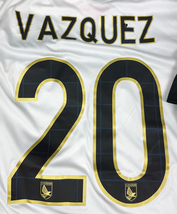 Maglia Away del Palermo personalizzata Vázquez 20 stagione 2015-2016, in versione Player Issued con patch ufficiale Serie A.