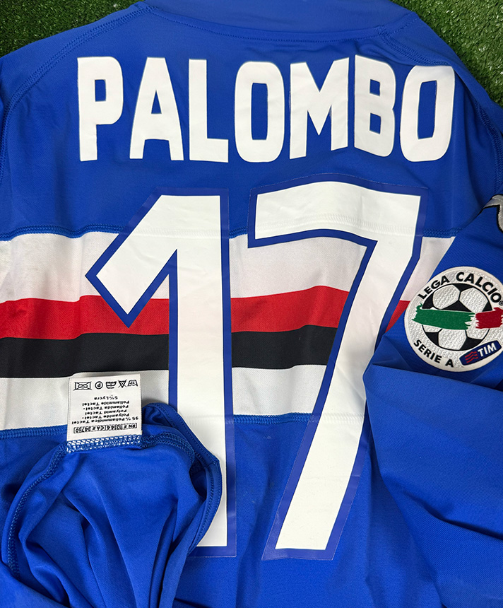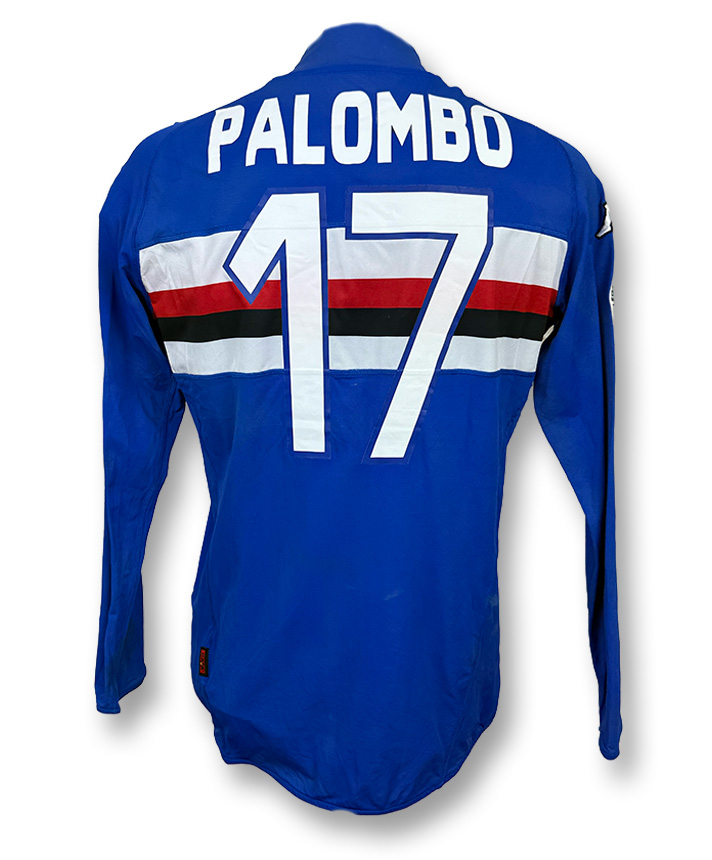Maglia Home della Sampdoria stagione 2007-08, versione Player Issued, personalizzata Palombo 17 con patch ufficiale Serie A.