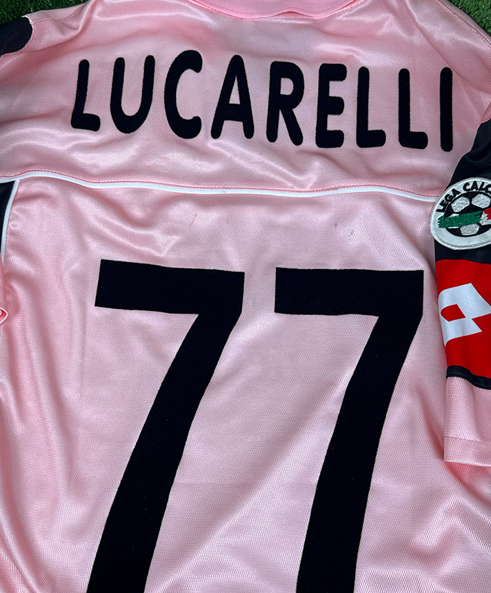 Maglia Home del Palermo stagione 2002-2003, versione Player Issued, personalizzata Lucarelli con patch ufficiale Serie A.