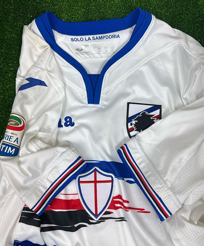 Maglia Away della Sampdoria stagione 2016-2017, versione Player Issued preparata per Ricky Alvarez con patch ufficiale Serie A.
