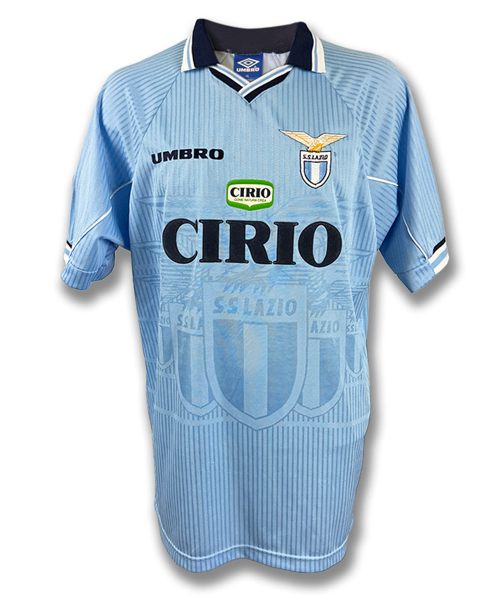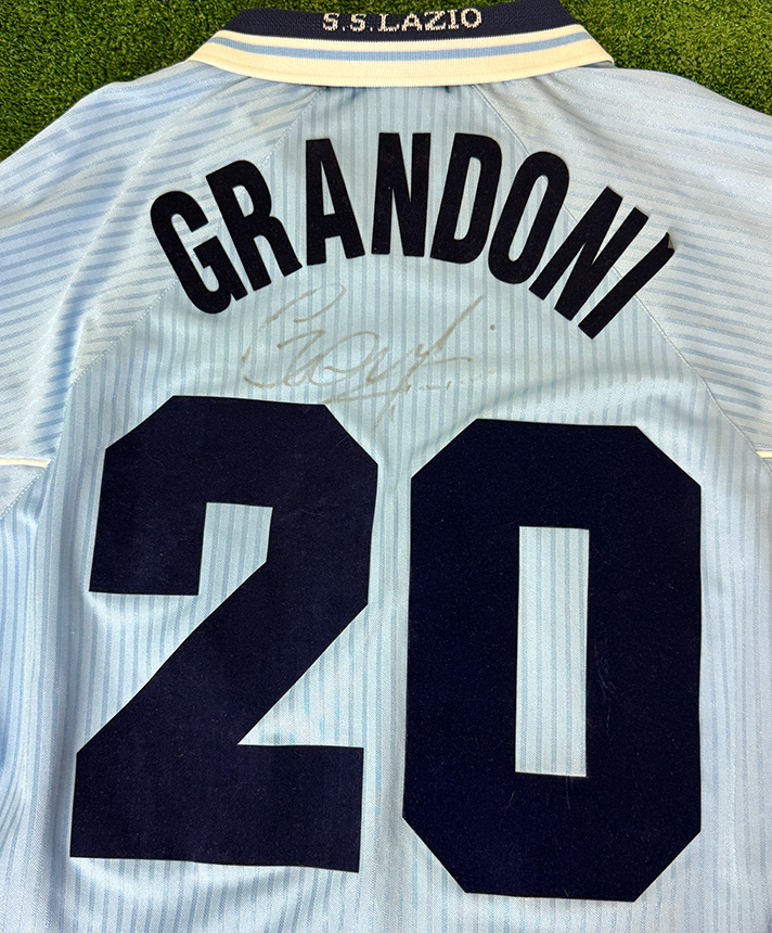 Maglia Home della Lazio autografata da Grandoni della stagione 1997-1998, versione Player issued.