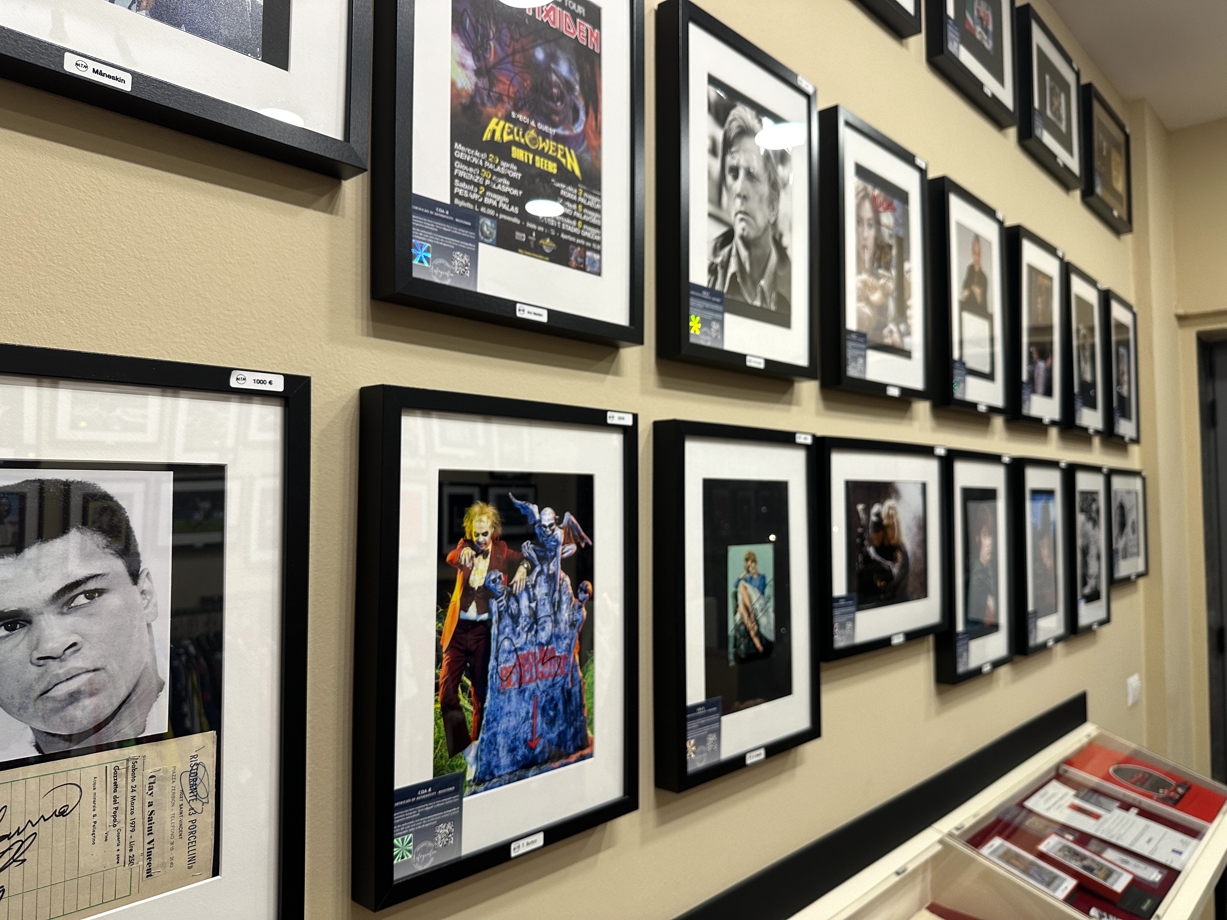 Accanto alle maglie, lo spazio ospita autografi certificati di sportivi, artisti e personaggi iconici, fotografie d’epoca e contemporanee, vinili autografati e memorabilia rari che spaziano dalla musica alla cultura pop.